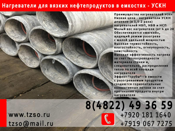 Назначение. Универсальный стеклокомпозитный нагреватель (УСКН) предназначен для разогрева и поддержания температуры вязких нефтепродуктов, битума, гудрона, мазута, масла, агрессивных диэлектрических сред в емкостях, хранилищах, цистернах, различных резервуарах, а также воздушных и невзрывоопасных газовых сред.